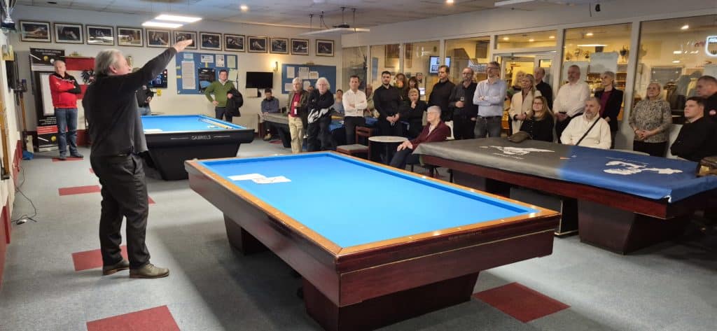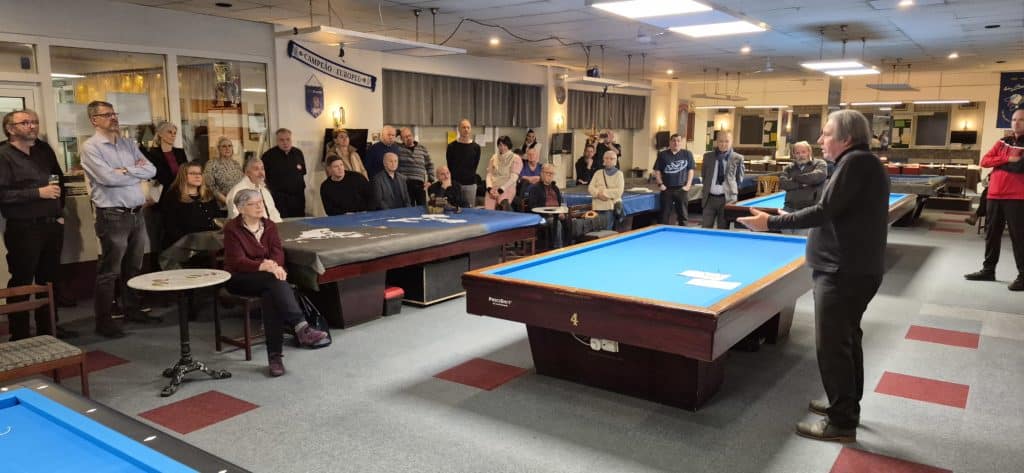 Un mot pour cette organisation et ses organisateurs qui nous ont reçu avec tant de gentillesse et de bienveillance, une organisation sans faille sur du matériel parfait, mais quand même difficile puisque les trois tables était complètement différentes et avaient chacune leur difficulté de roulement, d’allonge et de niveau. Un événement qui a attiré environ 50 spectateurs au moins tous les jours, tous heureux de voir du jeux de série produit par ces grands champions ! Il régnait dans ce club mythique une présence bienveillante de Heinrich, on se sentait chez soi, dans sa famille, avec ses amis… Un grand merci à tous pour votre accueil très chaleureux.