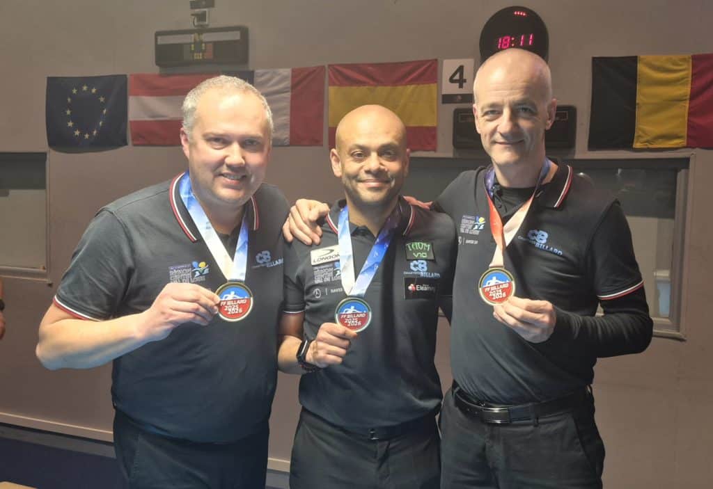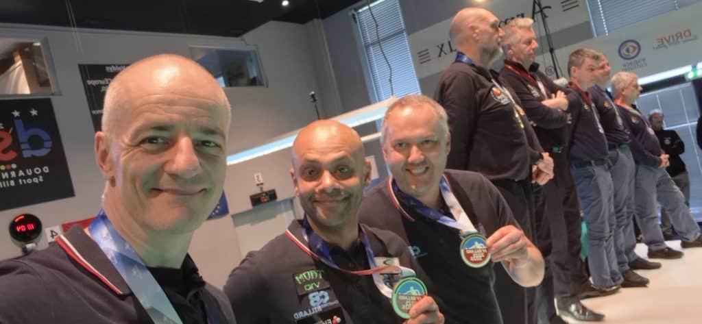 « Pour ma part, je n’ai trouvé le bon chemin qu’à mon dernier match ! Le premier j’ai terminé mes 200 points en 8 reprises avec une somme d’erreurs absurdes et monumentales, concédant une égalité puisque Gerassimopoulos égalise à la reprise. Pas de quoi être rassuré. Au second tour, le perd mon match contre Florent alors que j’ai eu tellement de possibilités. Lors de ces deux matchs, j’ai raté plus de la moitié des reprises sur des positions faciles, et lorsque j’avais les billes j’ai jamais été capable de les exploiter réellement. Je n’avais confiance en rien, un cauchemar. En demi-finale, face à Niessen, je n’étais que l’ombre de moi-même, enchainant une première série de 75 sur mouches, uniquement dans le dur, puis un seconde prenant la pause à 112 après la 2ème reprise. Mais aucun contrôle, que des doutes, des craintes, des points trop fort ou trop doux. Puis Niessen est revenu et moi je me suis liquéfié, devenant incapable de faire plus que 134 points en 10 reprises. Même qu’alors il jouait pour seulement 4 points, Niessen me laisse les billes dans le coin. J’ai été incapable d’en profiter, avec mon cerveau retourné, je n’ai pas su faire plus de quelques points avant de perdre les billes… Bref, une grosse déception pour ces contre performances qui privent le C’Chartres d’une place en finale. Tout le travail effectué depuis une année ne parvient pas à se mettre en place… Je suis triste pour mon ami Willy qui mérite mieux qu’un tocard comme moi. Puis s’en est suivi un debriefing que j’ai initié au repas du soir, une franche discussion avec mes coéquipiers. J’ai écouté et pris leurs conseils, je les ai mixé à mes connaissances, j’ai travaillé la nuit et le matin pour être prêt à mette en place mes compétences lors de la petite finale à 10h face à Andernos et mon ami Gerassimopoulos. Belle série de 195 qui s’arrête à 5 points du but suite à une clairvoyance insuffisante, donc clairement stupide. Mais quand même, le remise en ordre du cerveau et le travail de préparation m’ont permis d’arriver devant la table en bonne condition pour performer. Malheureusement, le réveil a été trop tard et le C’Chartres paie encore une fois mes contre-performances pathétiques. La suite à Antalya !«
